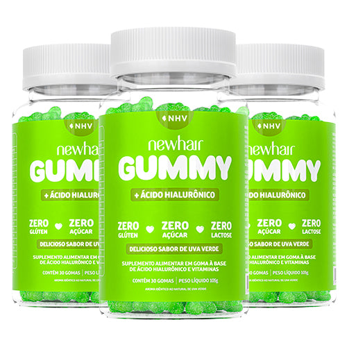 Com uma fórmula rica em 8 vitaminas essenciais e o poderoso ácido hialurônico, a gominha para cabelo e unha da New Hair está disponível em três sabores irresistíveis: morango, laranja e uva verde. E o melhor de tudo: é uma vitamina para cabelo sem açúcar, sem glúten e sem lactose, perfeita para quem busca um cuidado completo e sem restrições.