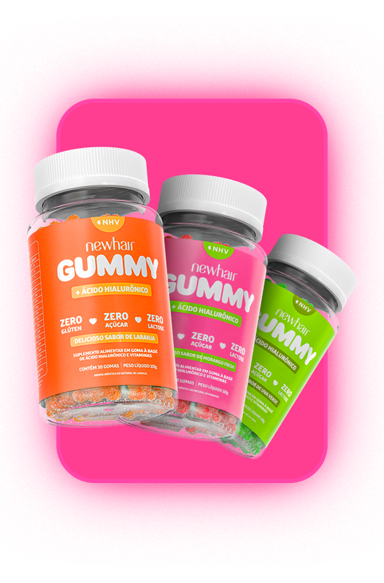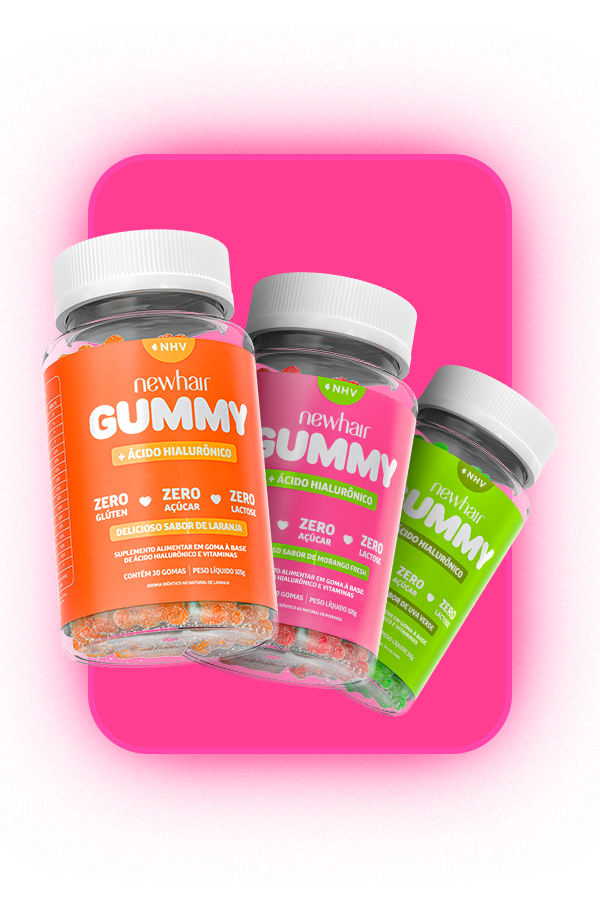 New Hair Gummy une ciência e sabor em uma experiência deliciosa, sem abrir mão da eficácia. Com ácido hialurônico e nutrientes essenciais, ela hidrata de dentro para fora, fortalecendo cabelos e pele sem pesar na sua rotina.