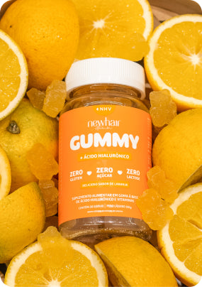 New Hair Gummy une ciência e sabor em uma experiência deliciosa, sem abrir mão da eficácia. Com ácido hialurônico e nutrientes essenciais, ela hidrata de dentro para fora, fortalecendo cabelos e pele sem pesar na sua rotina.